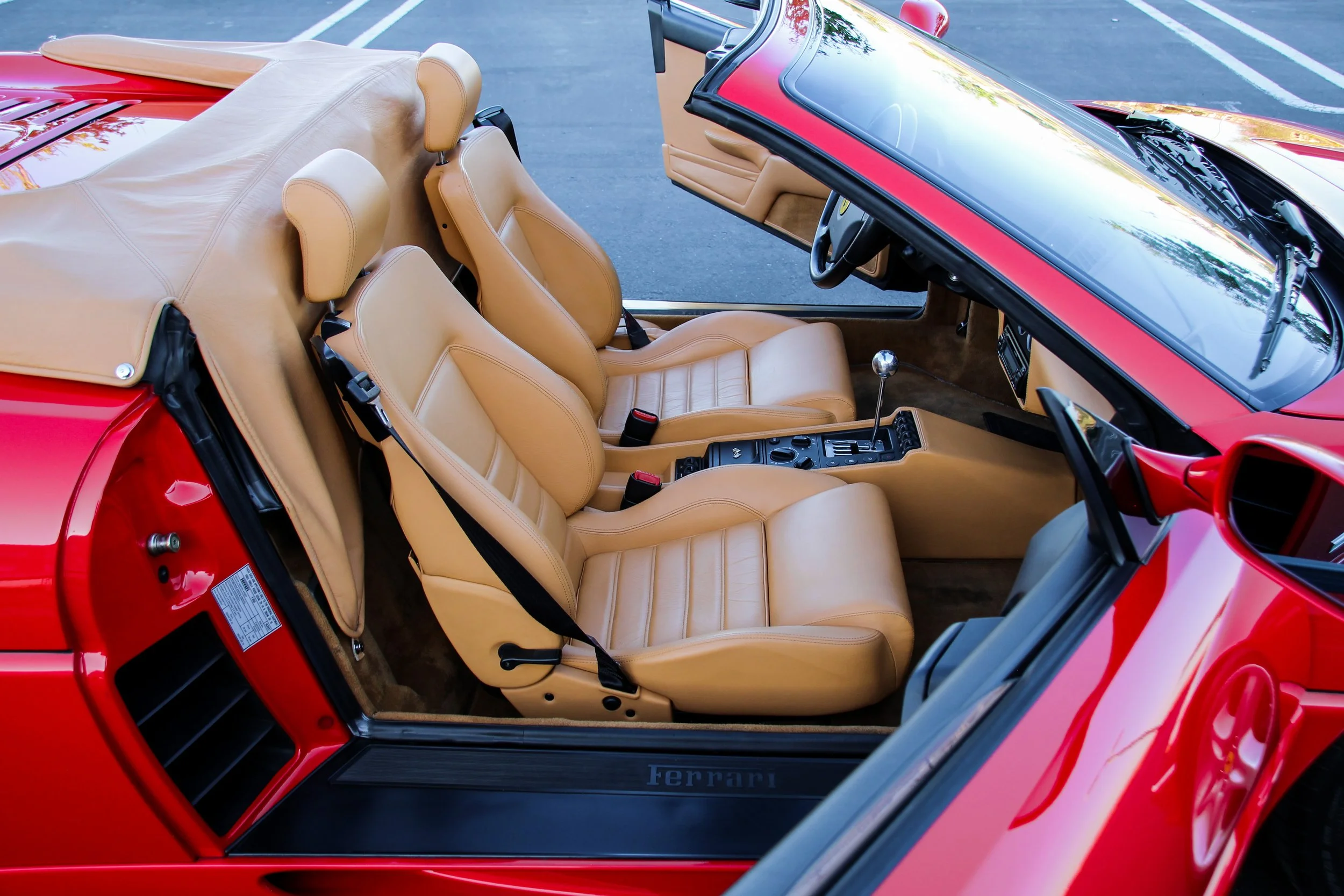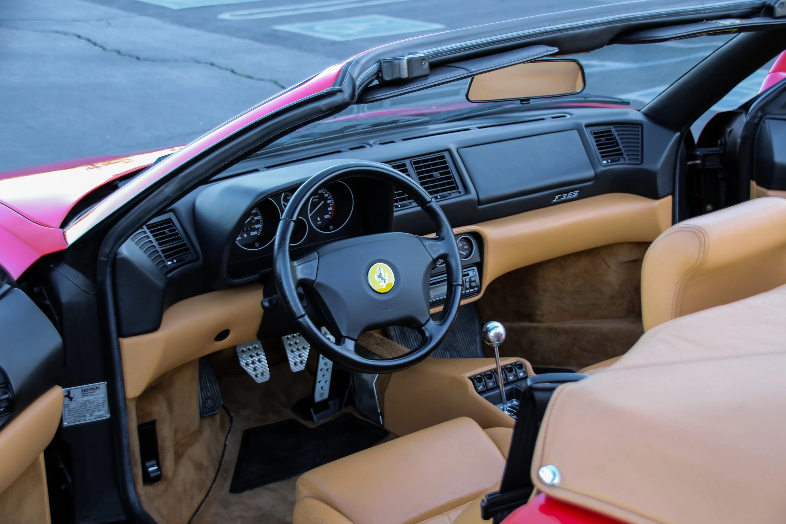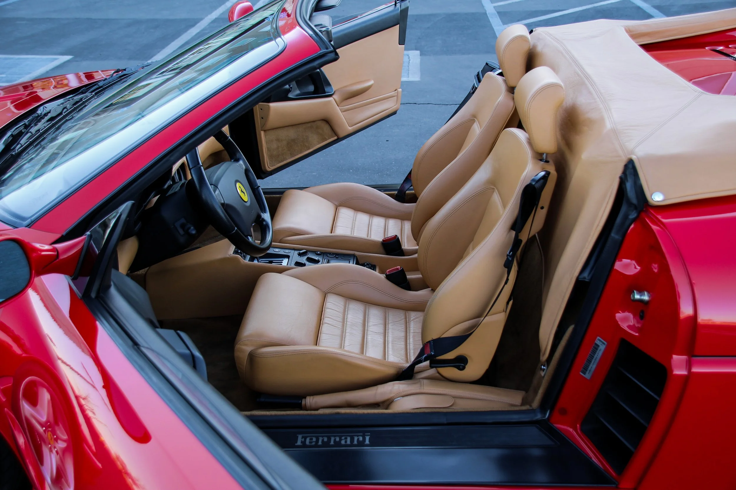 With less than 8500 well documented miles, one of the finest original 6-speed F355 Spiders in the world. Proudly shown at the 2025 Quail Motorsports Gathering and routinely maintained by Exclusive Motorcars of Arizona (EMC) in Phoenix since 2021 with additional detailed service records from Salerno Motorsports of Rocklin, CA back to 2002. While most Red/Tan spiders sported black retractable tops, this car came equipped from the factory with a tan top complementing the interior.