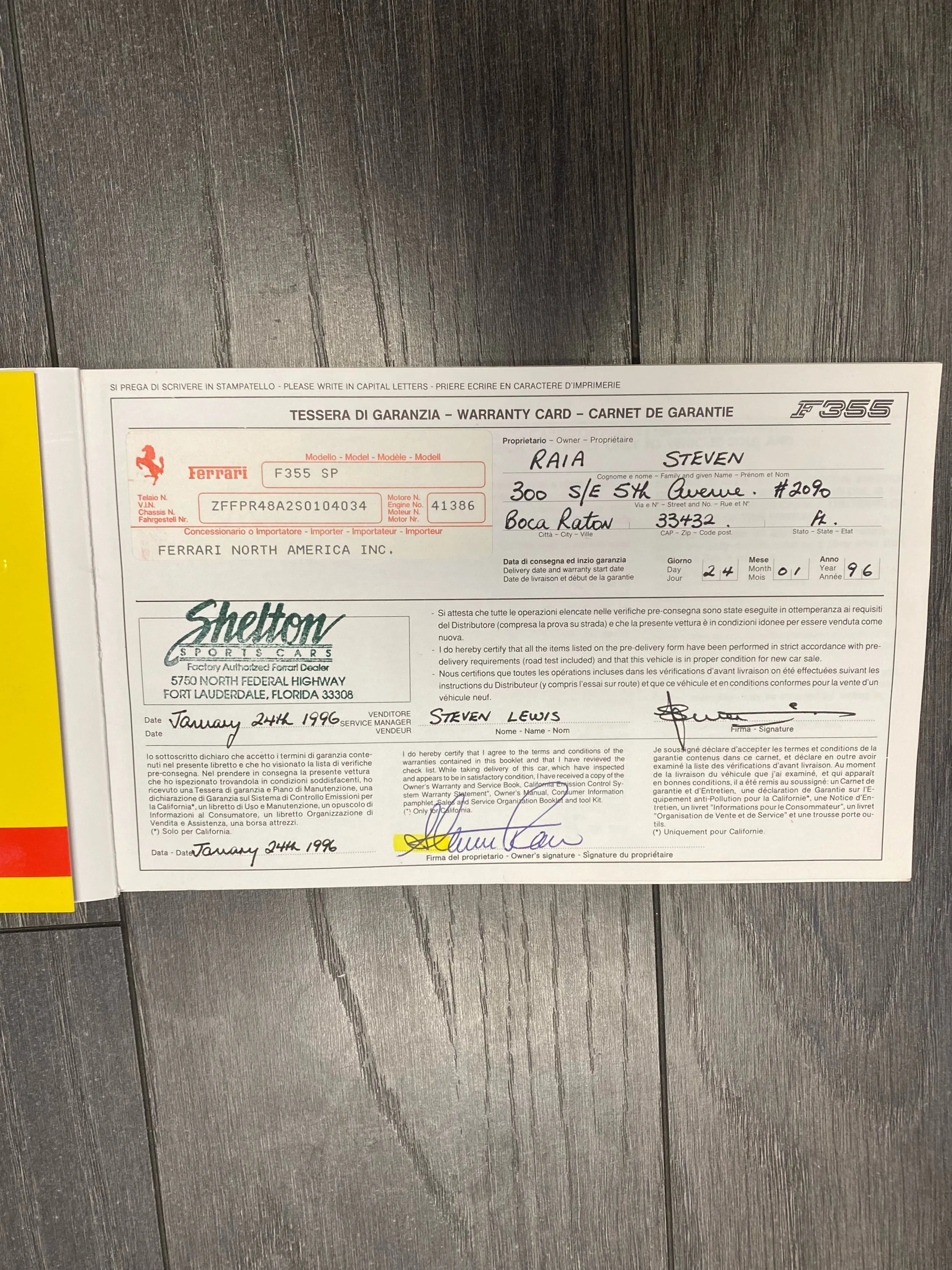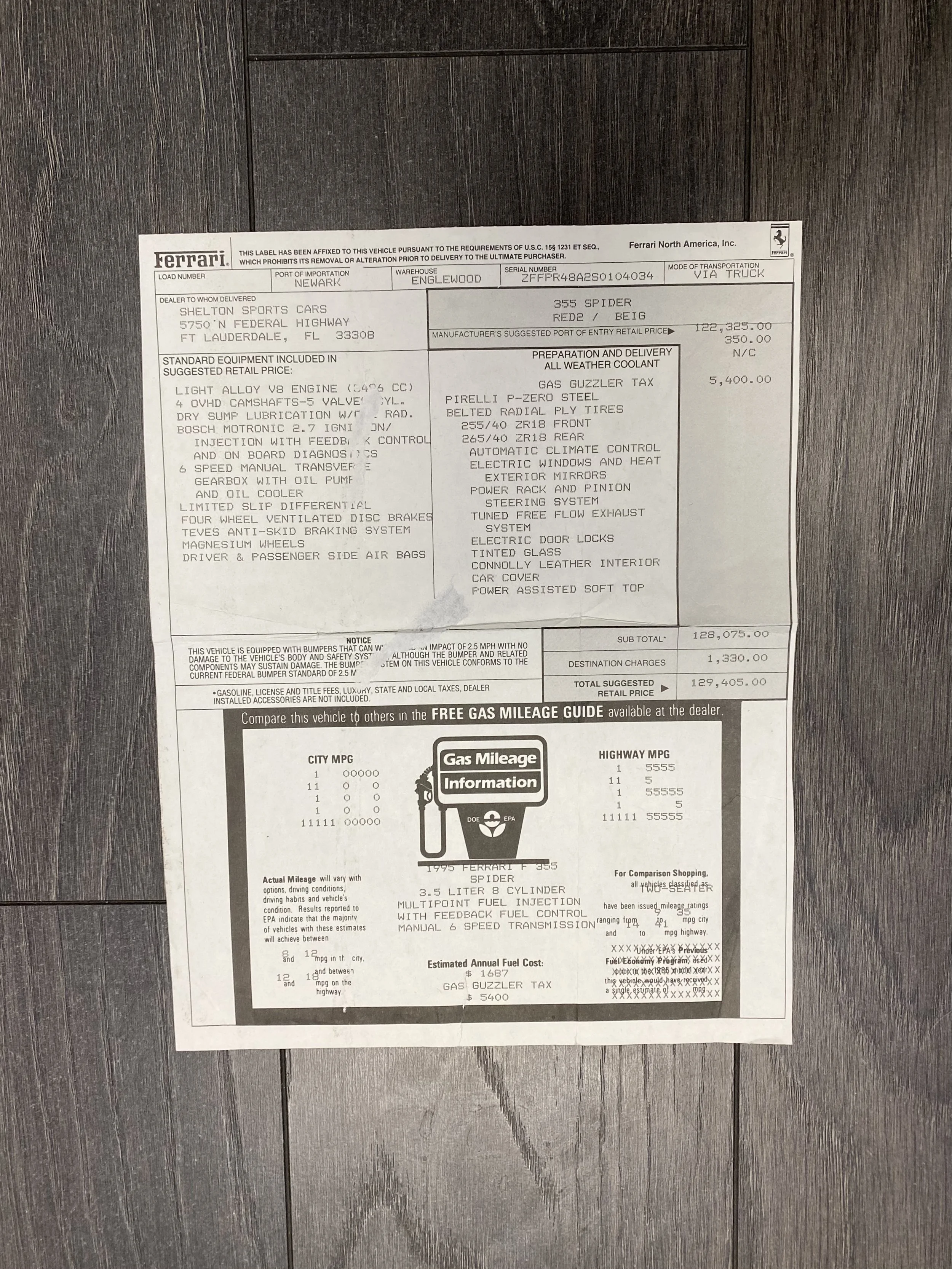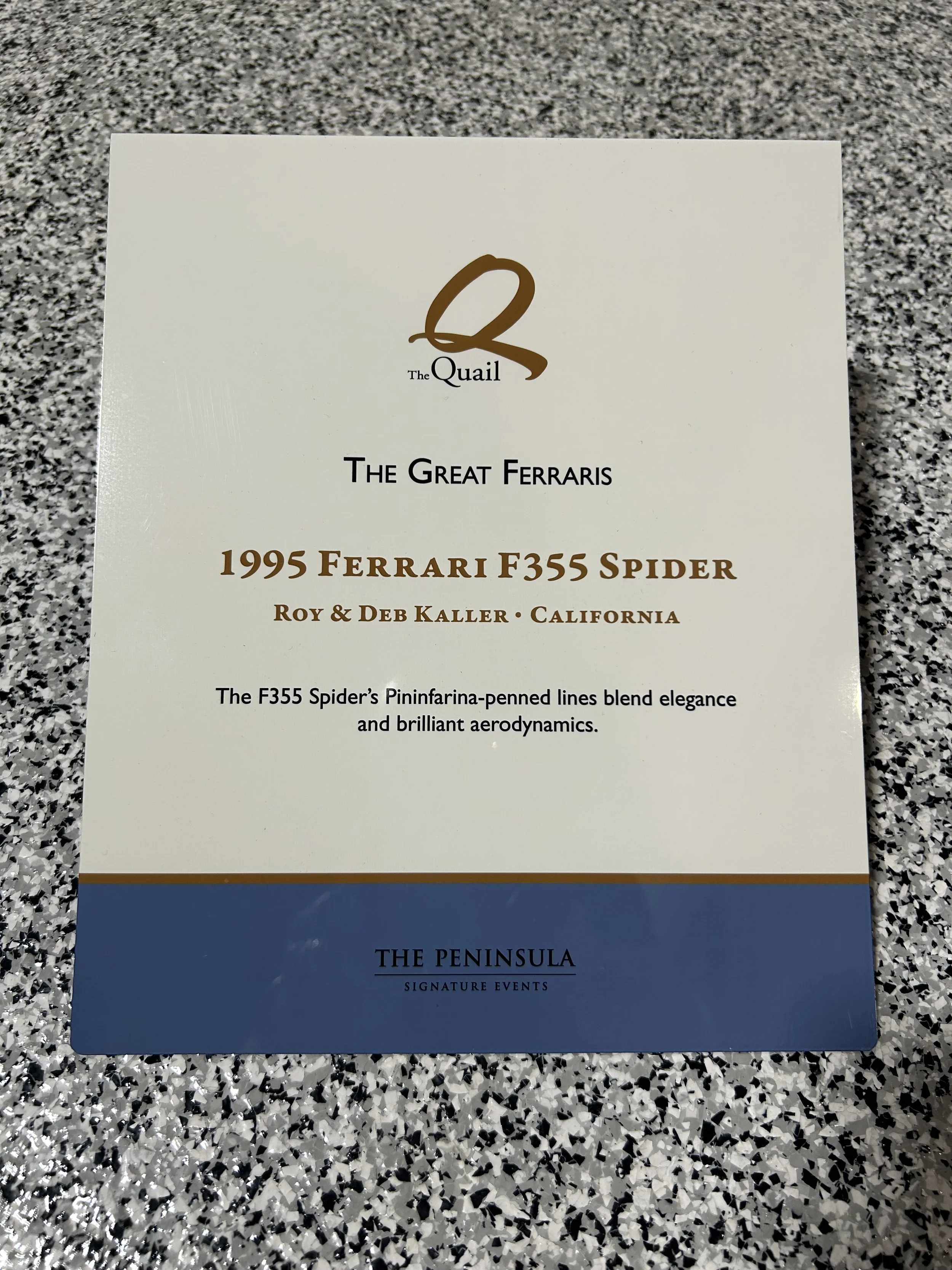 With less than 8500 well documented miles, one of the finest original 6-speed F355 Spiders in the world. Proudly shown at the 2025 Quail Motorsports Gathering and routinely maintained by Exclusive Motorcars of Arizona (EMC) in Phoenix since 2021 with additional detailed service records from Salerno Motorsports of Rocklin, CA back to 2002. While most Red/Tan spiders sported black retractable tops, this car came equipped from the factory with a tan top complementing the interior.