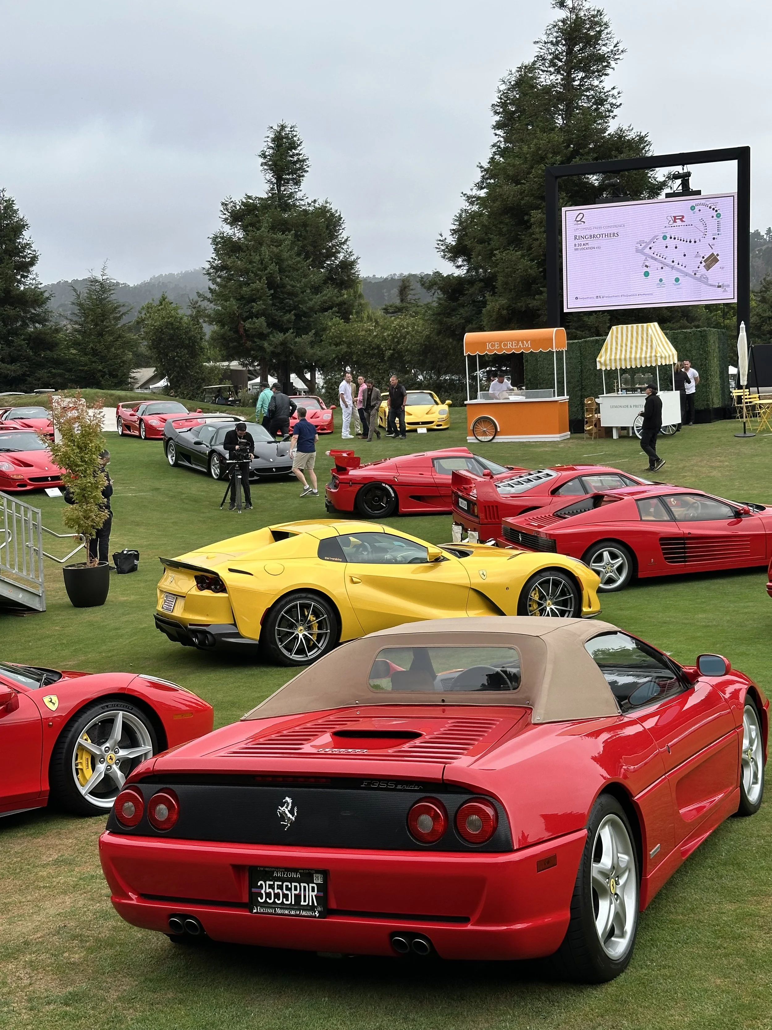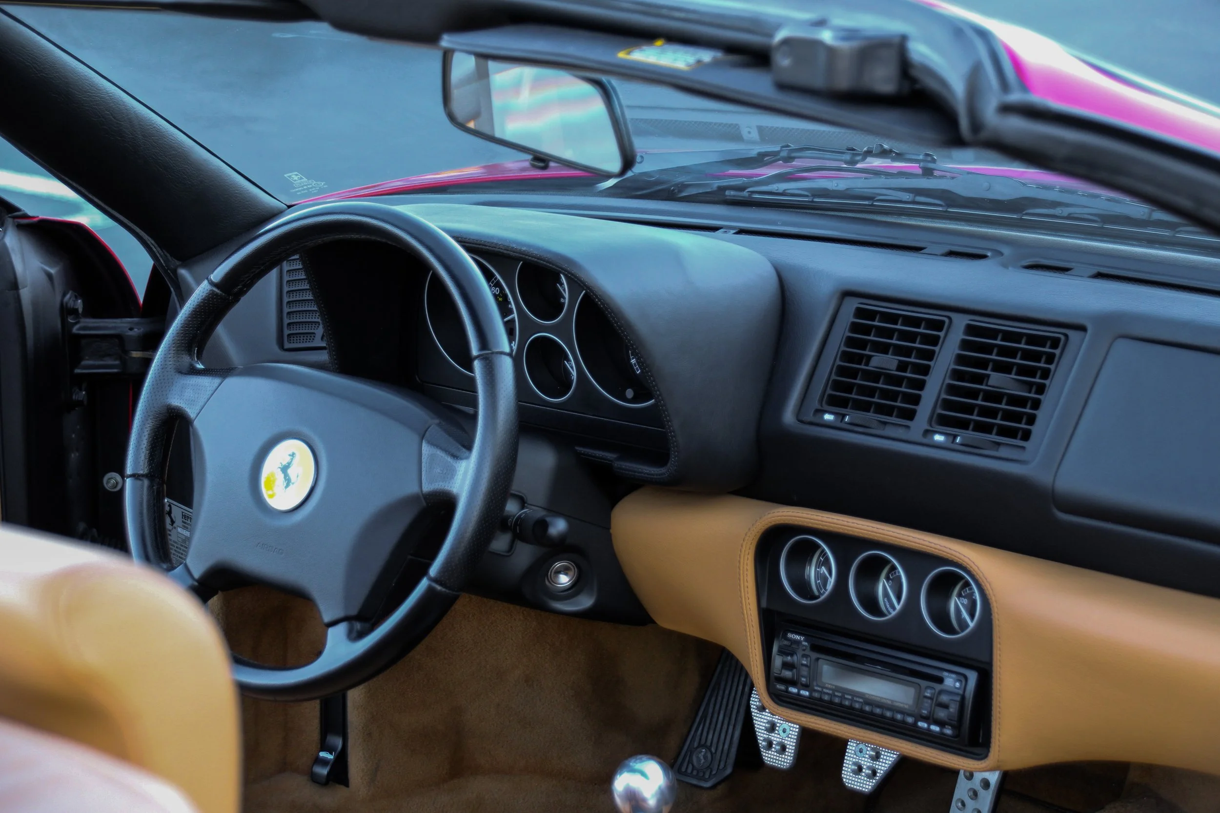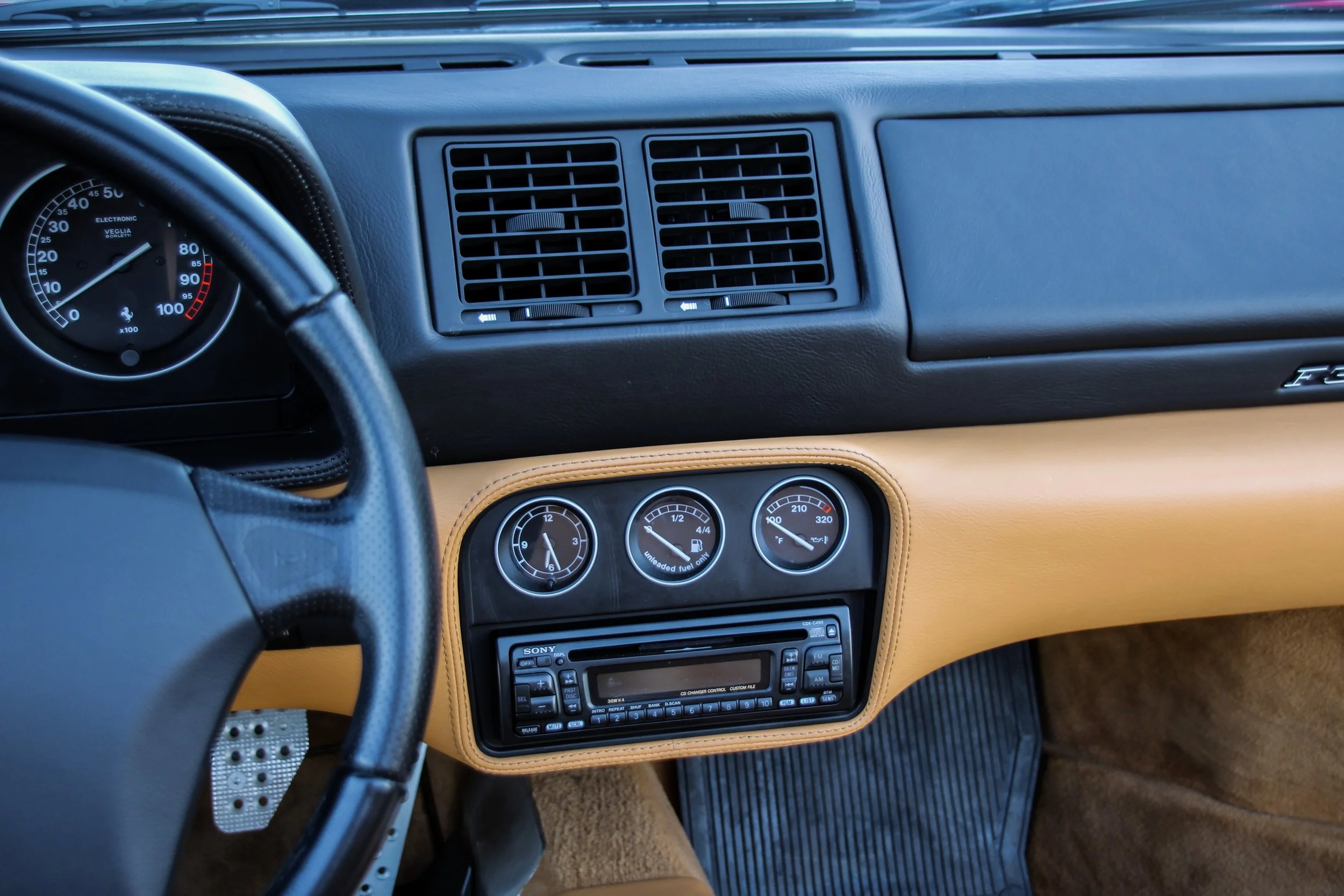 Engine out service was completed in 2021 and included replacing the valve guides which were troublesome on some early 355’s. More recently, EMC has performed annual services and replaced the air conditioning compressor and clutch slave cylinder. In addition “while we’re in here” EMC installed a new clutch and updated Hill Engineering T/O bearing. A Challenge rear grill was sourced from Italy and EMC custom crafted beautiful floor mats using matching vintage carpeting. Note that I am the 4th and 5th owner reported in CARFAX as I moved the car registration from California to Arizona in 2024.